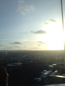 We wanted to use our tickets to pour our own pints, but after an issue with the taps, we decided to have someone else pour one for us at their seventh floor bar and watch the sun set over Dublin.