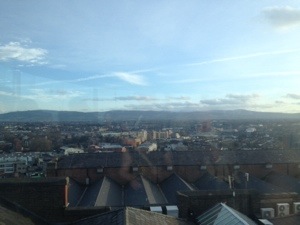 Ann, the caretaker of the cottage, generously picked us up early Monday morning and drove us to catch the hour and a half bus ride to Dublin. Even the busses were re-routed for the parade so we were dropped at a random point in the city. We hailed a cab and sped to the Ballsbridge Hotel (tee hee). Here, we dropped off our bags and headed out into madness.