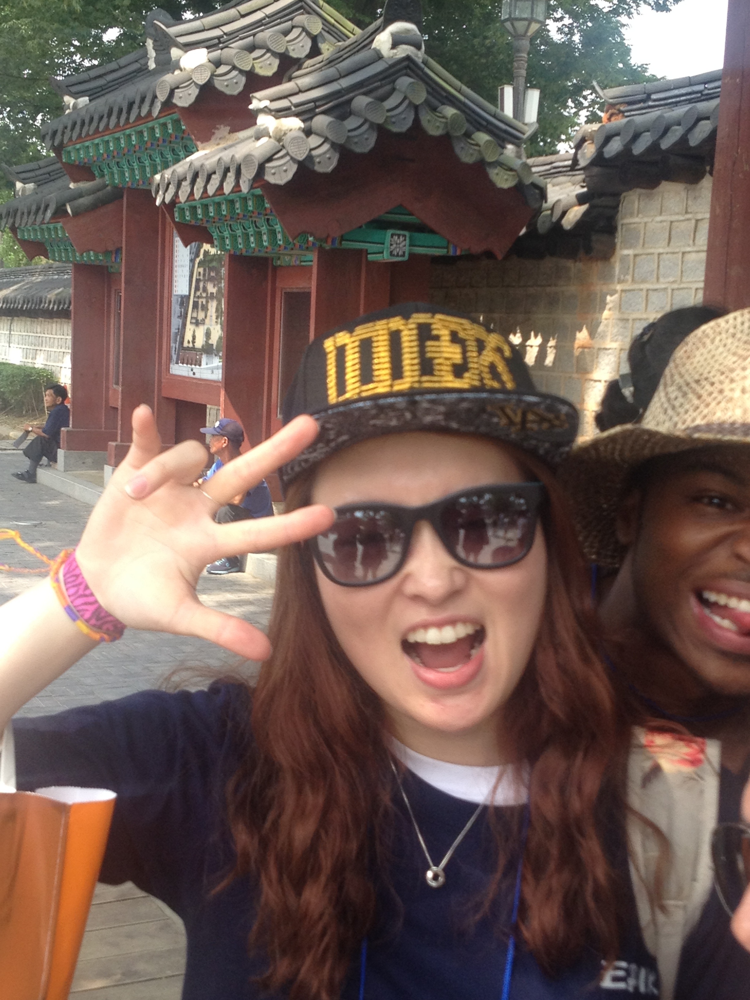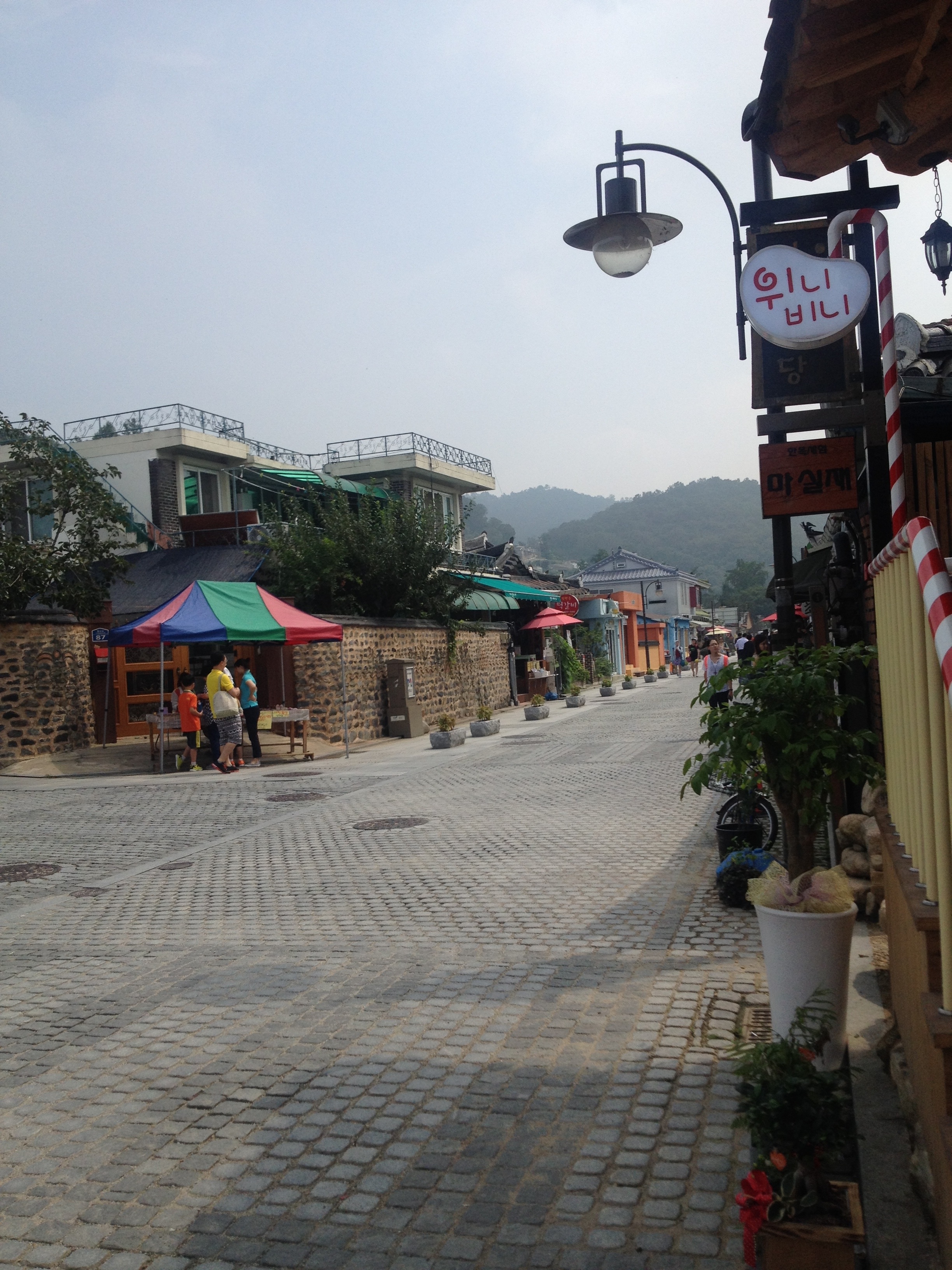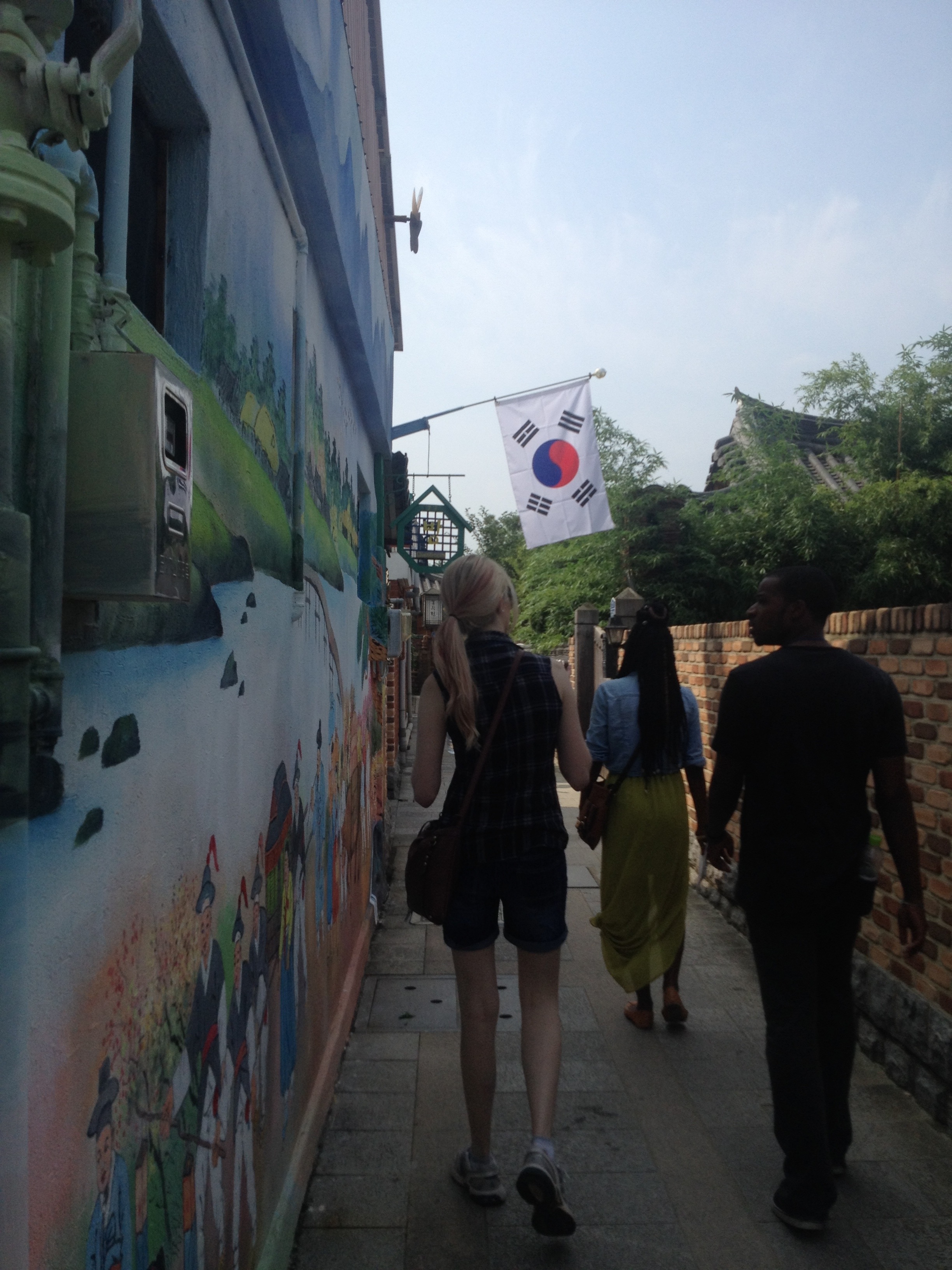 A definite highlight of orientation was our Field Trip to Hanuk Village. This village was built by wealthy Koreans who, during the Japanese occupation, didn’t want to live amongst the Japanese that were invading their city. It’s a really cool place filled with awesome food and shops, but it’s really touristy. All the Koreans were walking around with what I like to call “Selfie Sticks” which are just mounts for their smartphones….and they are literally taking selfies and ussies EVERYWHERE. (WordPress, tell me why “selfies” isn’t marked with a red line and “ussies” is?) At Hanuk Village we had a lot of free time to explore: