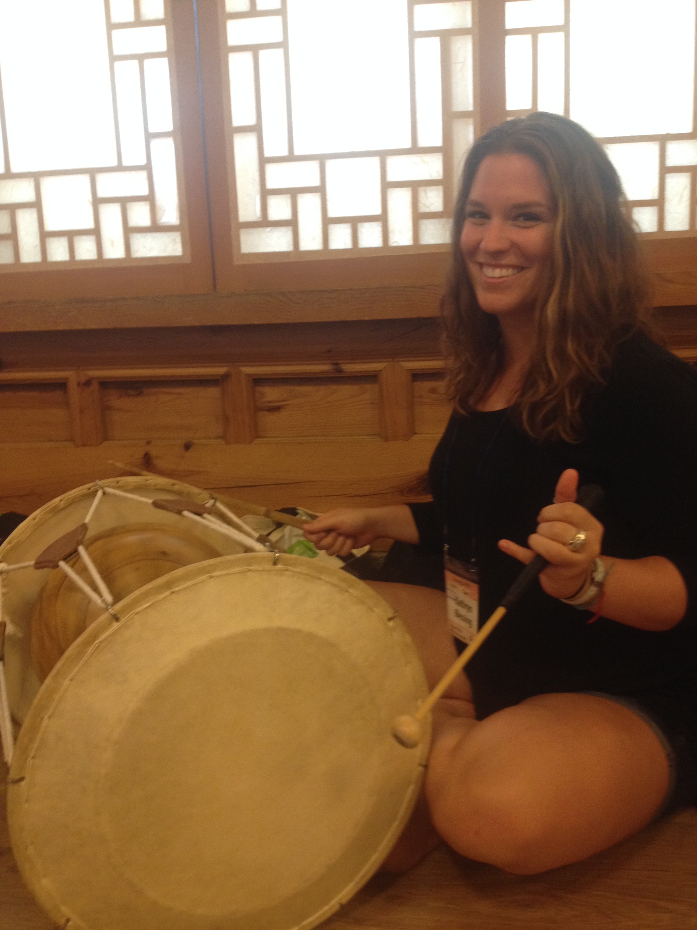 The most cultural experience we had, however, was when we split up for traditional Korean papercraft, Korean drum lessons, and Korean mask dancing. We all made paper fans…which would have been way more clutch earlier in the day when all of us were sweating profusely.